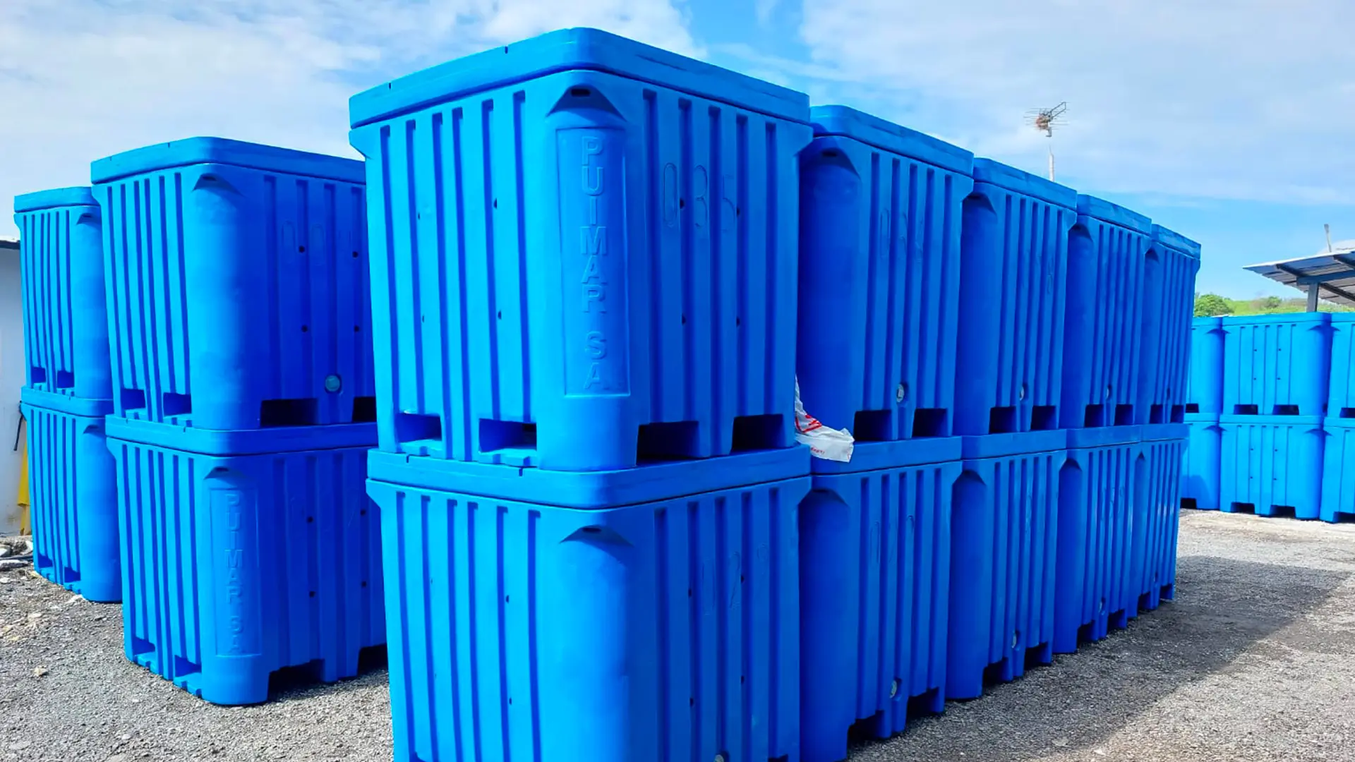 Tanque de base rectangular, estructurados para el transporte de larvas. Hecho para optimizar el espacio disponible de los camiones cerrados y plataformas.